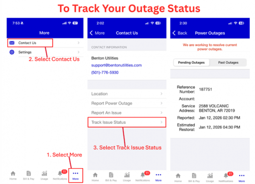 Beginning at 7 am January 21st Benton Utilities customers will have access to an electric outage map and have the capability of reporting electric outages in three different ways! These new outage reporting options are available for electric services only. Please continue to contact our dispatch to report issues with water, wastewater or other electrical concerns. Any announcements concerning these services will continue to be posted to Facebook.